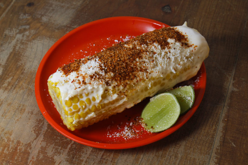 • Elote dulce (gringo) con mayonesa, queso y chilito