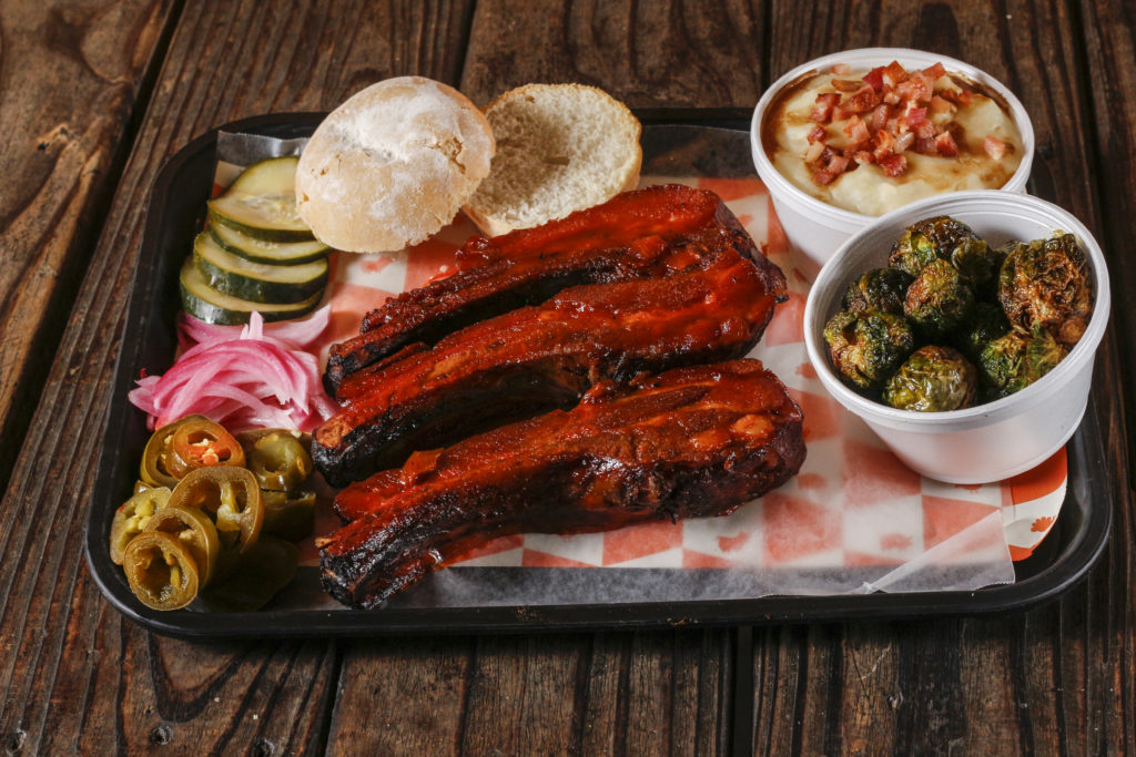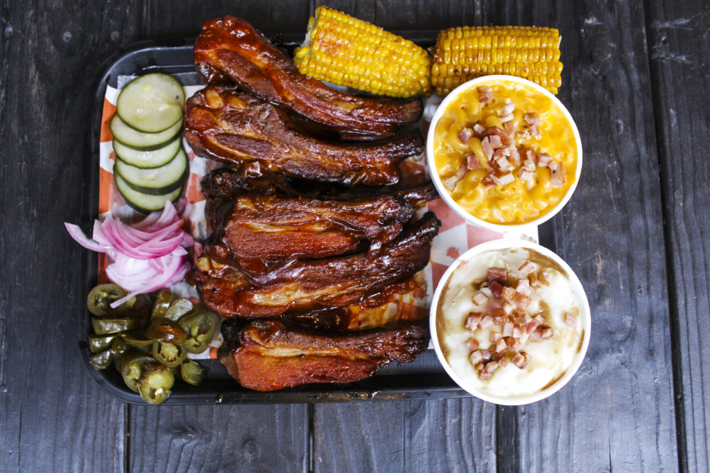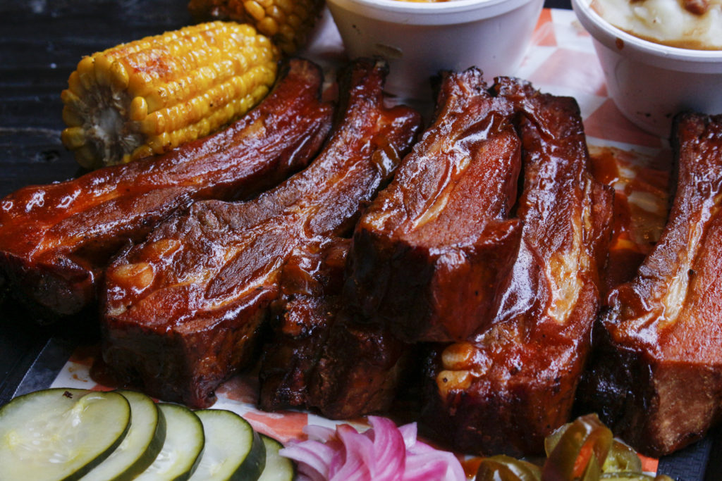 Costilla sazonada con el RUB de la casa, cocinadas lentamente al fuego de leña de Mezquite por 16 horas.